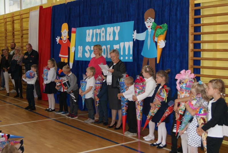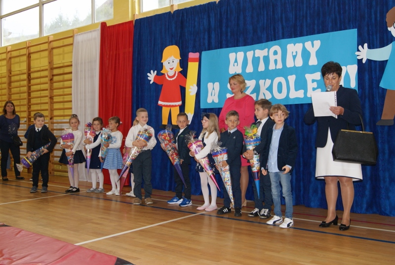 Nieco później, bo o 10:00, odbyło się rozpoczęcie roku klas I. Pierwszoklasiści i pierwszoklasiści przybyli do szkoły odświętnie ubrani z obowiązkową "tytą" w ręce. Dzieci przywitała w progach imielińskiej "dwójki" Pani Dyrektor; najmłodsi uczniowie poznali również swoje wychowawczynie, Panie: Celinę Buczek, Anetę Pudlewską, Barbarę Szopę, Ewę Gierlotkę i Jadwigę Lis. Pasowanie na ucznia odbędzie się 6 października.