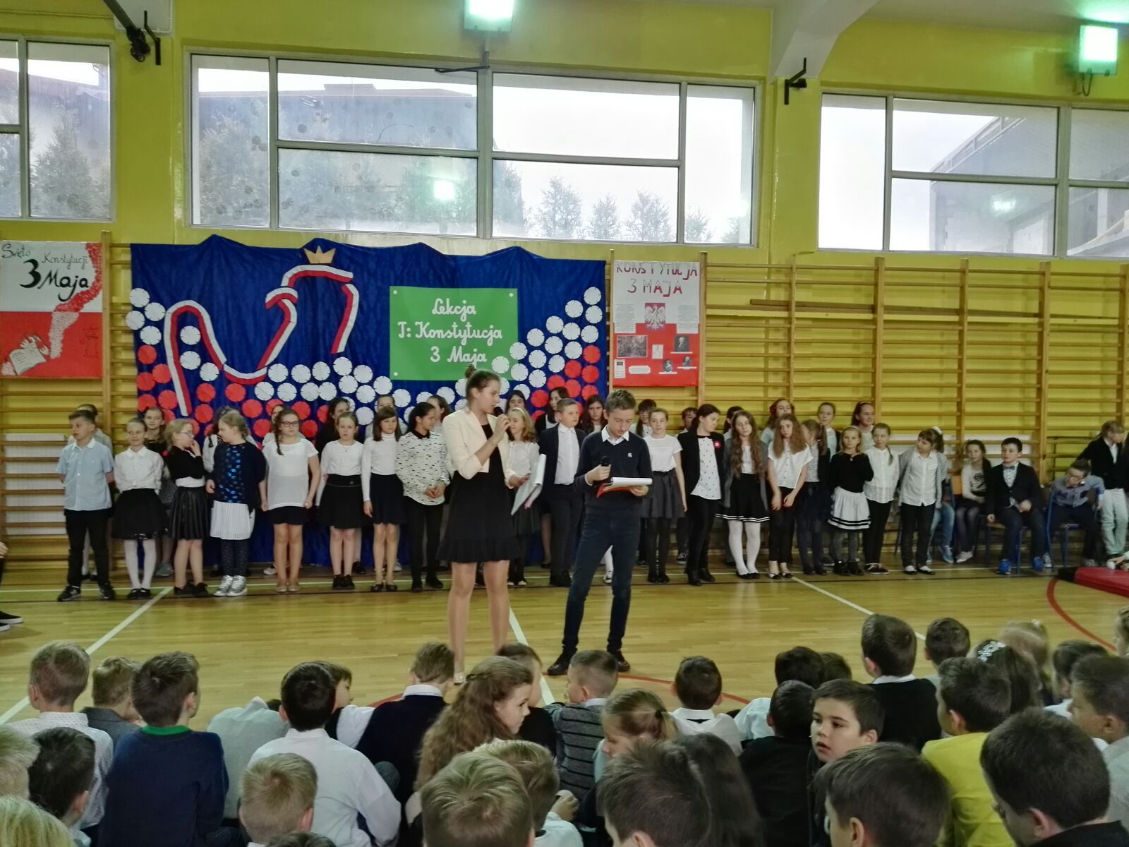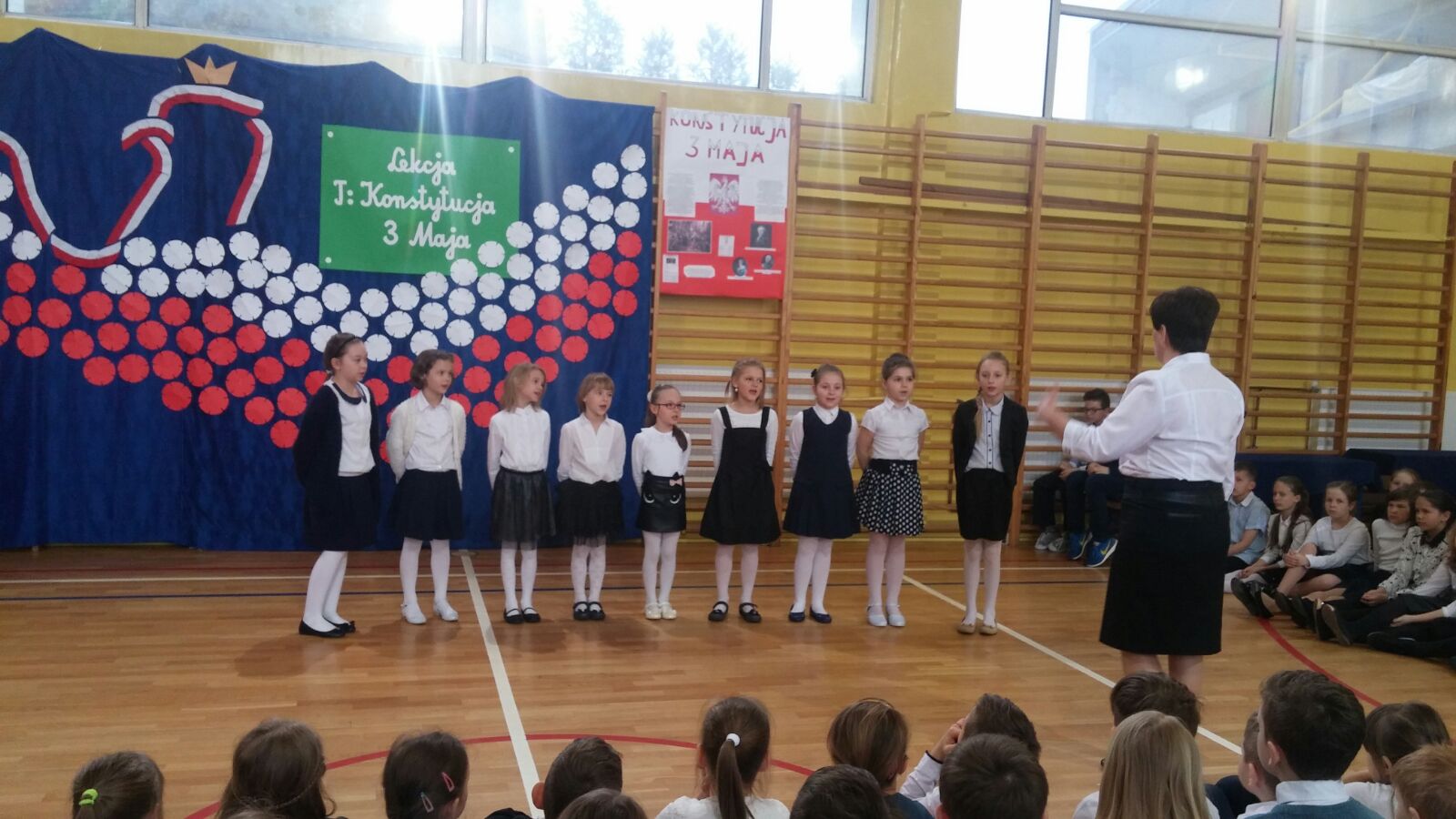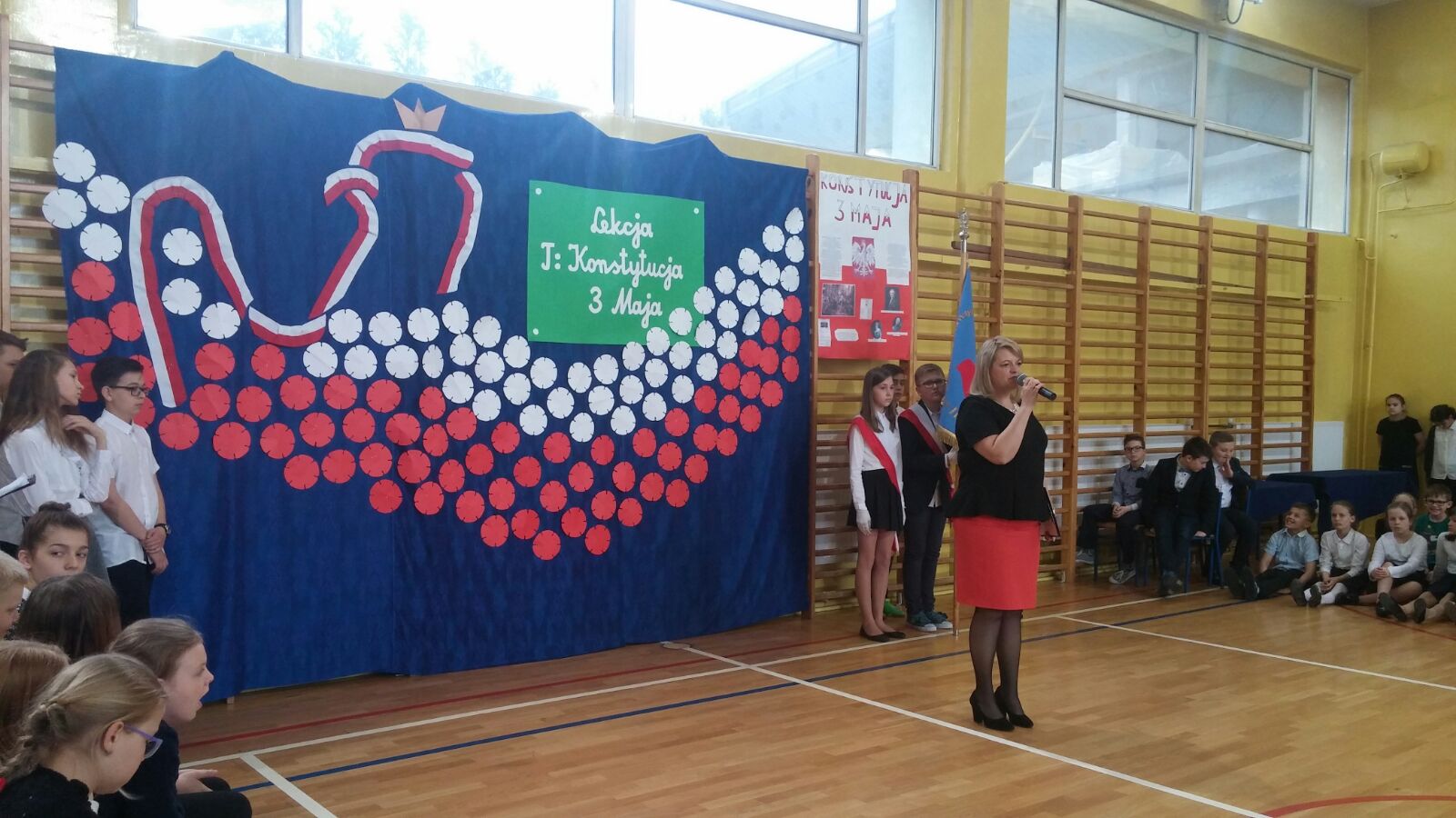 Następnie dzieci miały okazję oglądać scenkę, która była świetną lekcją historii. Podczas przedstawienia, można było się dowiedzieć, co to jest właściwie konstytucja, dlaczego Konstytucja 3 Maja była tak ważna dla Polski oraz że obchodzimy już 226 rocznicę jej uchwalenia. Uczniowie występujący podkreślali również fakt, że była to druga na świecie i pierwsza w Europie konstytucja.