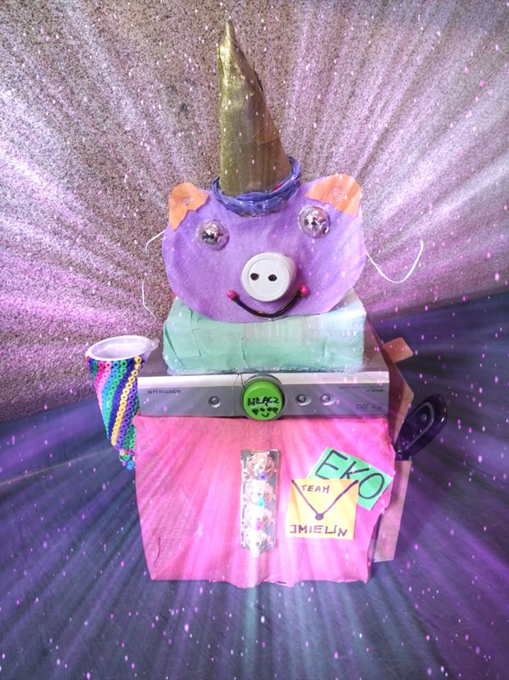 Jak czytamy w uzasadnieniu nagroda trafiła do naszych uczniów za: bardzo wszechstronne prace oparte na wyobraźni twórczej: za ekokoncepcję i wykonanie urządzenia „ekorożca wielofunkcyjnego” do przetwarzania zużytego ZSEiE z wydzieleniem baterii, za wspaniałą księgę recyklingu tłumaczącą i wyjaśniającą na czym polega recykling - z dosłownym zaglądaniem „w głąb rzeczy”, właściwym dla ludzi twórczych i kreatywnych – znaleźliśmy w niej m.in. skład materiałowy opakowań czy odpadów ZSEiE, profesjonalną ekogalerię, ale także przykłady poszukiwań dzieł wykonanych w technice recyklart w najbliższej okolicy.