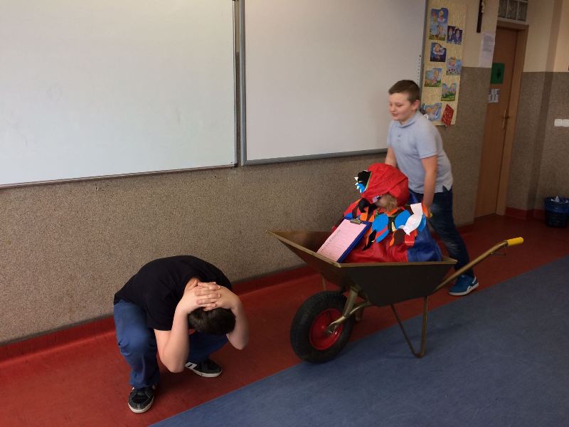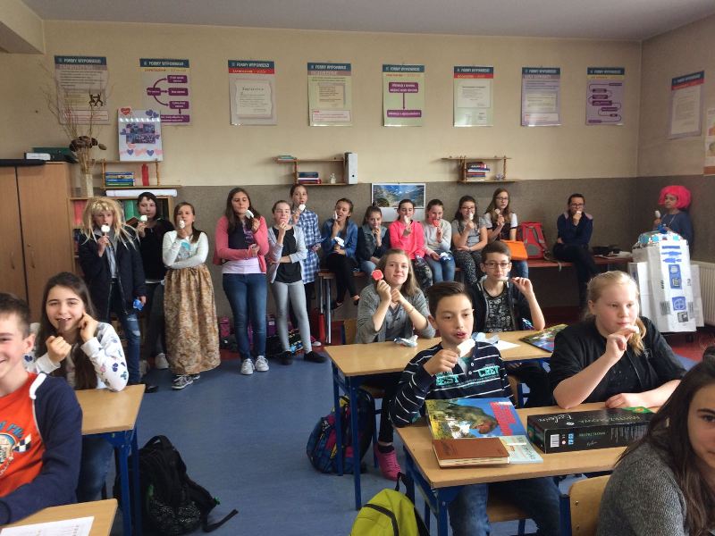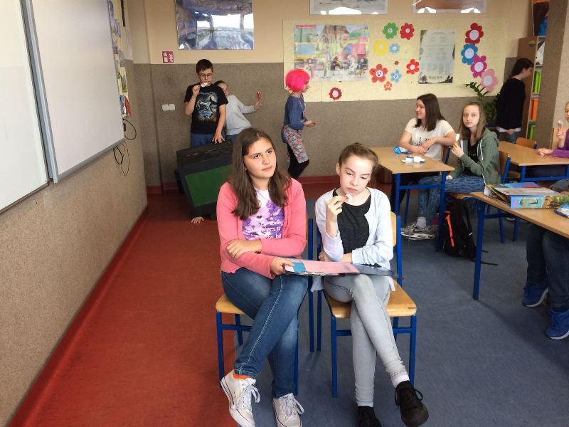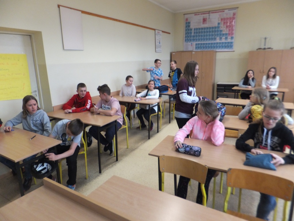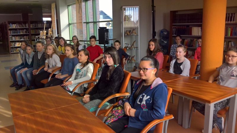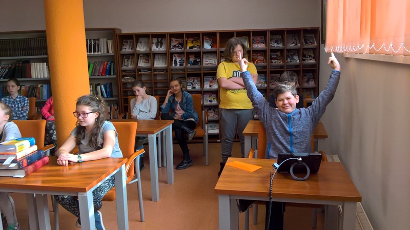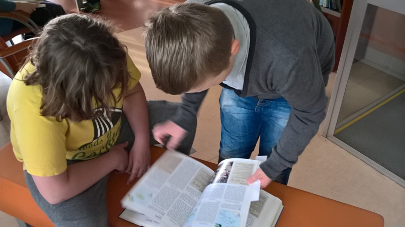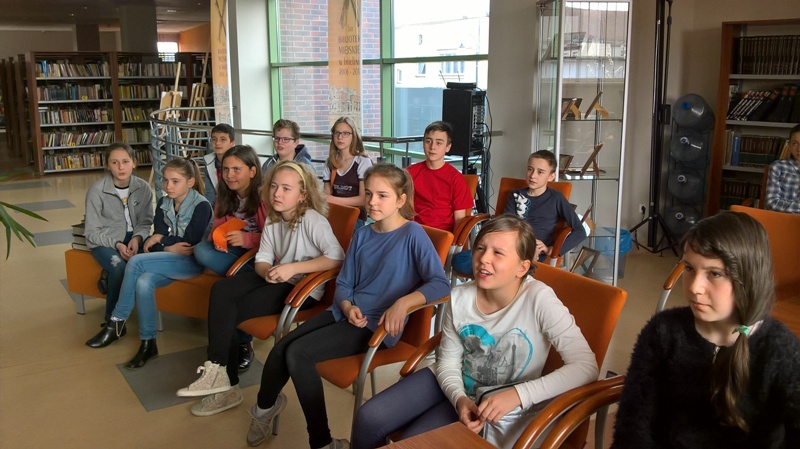 Szóstoklasiści przypomnieli sobie zasady korzystania z księgozbioru podręcznego oraz rodzaje źródeł informacji. Następnie, podzielni na dwie drużyny, walczyli o puchar "Mistrza wyszukiwania informacji", szukając odpowiedzi w rozmaitych encyklopediach, leksykonach i słownikach. Obie grupy szybko uporały się z zadaniami, więc pozostały czas można było przeznaczyć na zabawę w kalambury.