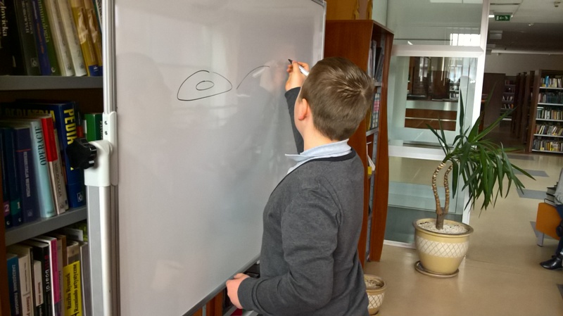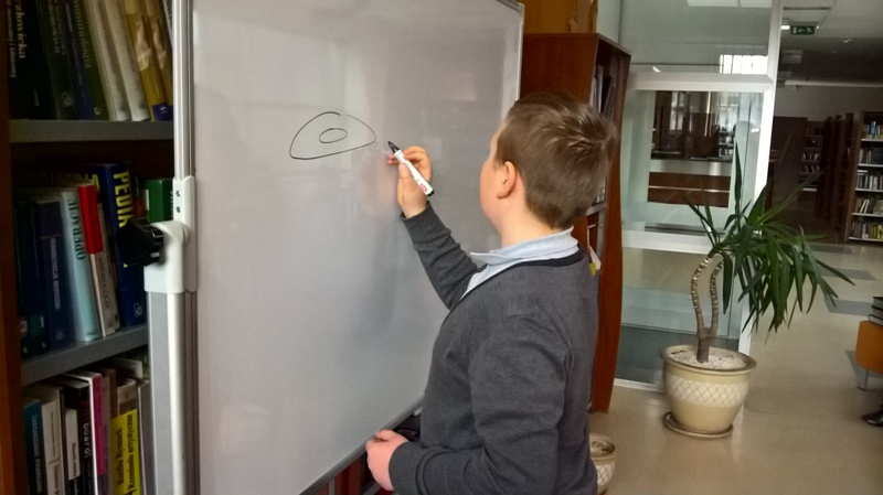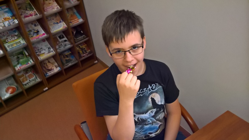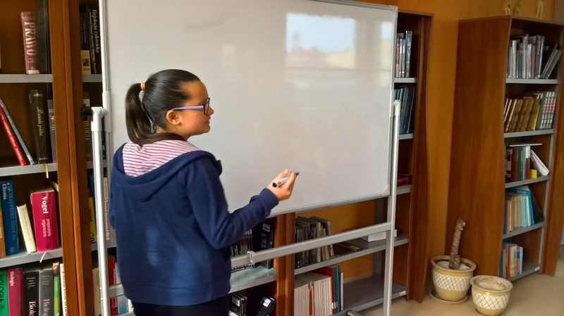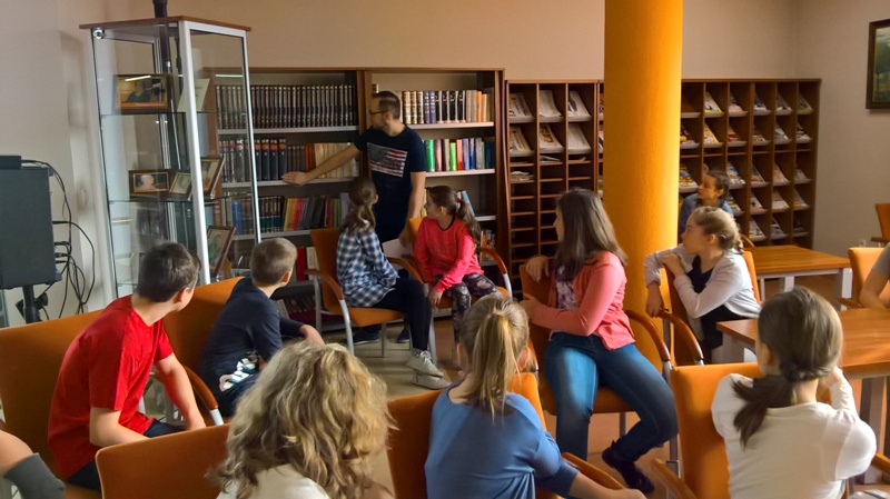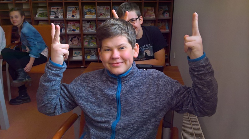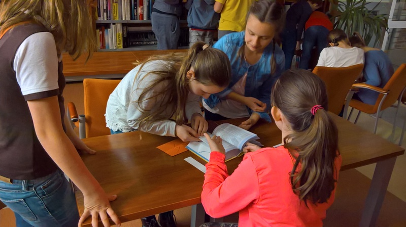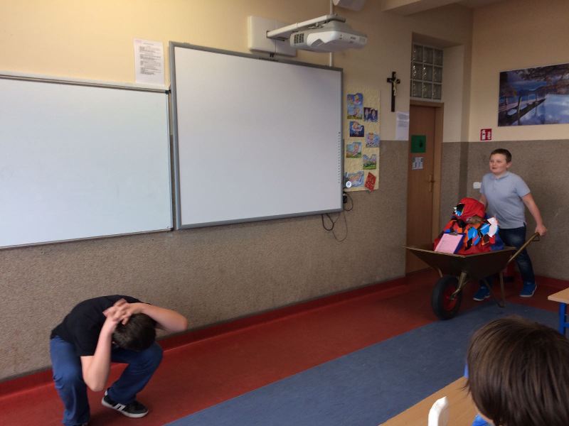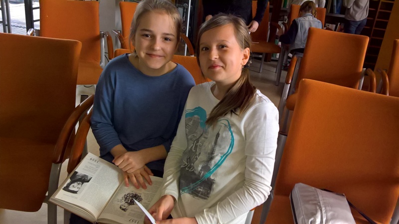 Szóstoklasiści przypomnieli sobie zasady korzystania z księgozbioru podręcznego oraz rodzaje źródeł informacji. Następnie, podzielni na dwie drużyny, walczyli o puchar "Mistrza wyszukiwania informacji", szukając odpowiedzi w rozmaitych encyklopediach, leksykonach i słownikach. Obie grupy szybko uporały się z zadaniami, więc pozostały czas można było przeznaczyć na zabawę w kalambury.