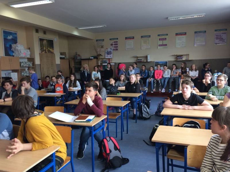 Uczennice i uczniowie klas VI "b" i VI "d" wzięli dzisiaj (12 kwietnia) udział w spotkaniu podsumowującym projekt filmowy.