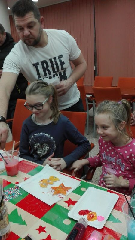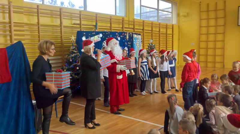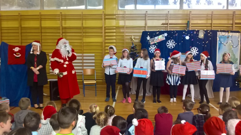 IV Imieliński Kiermasz Świąteczny to nasz debiut. Do tej pory cyklicznie, w okresie przedświątecznym, prowadzona była dystrybucja ozdób świątecznych na terenie SP. W tym roku zdecydowaliśmy się wyjść na „zewnątrz”. Choć pogoda nie sprzyjała, w sercach płonął ogień radości. Przyświecał nam szczytny cel: chęć pomocy osobom niepełnosprawnym z Ośrodka bł. Karoliny w Lędzinach. Po odwiedzeniu naszego kiermaszowego stoiska, kolejne zadowolone osoby wracały do domu zaopatrzone w imielińskie sianko, piękne kartki, misternie wykonane szopki betlejemskie, anioły i wiele innych, atrakcyjnych, ręcznie wykonanych ozdób świątecznych.