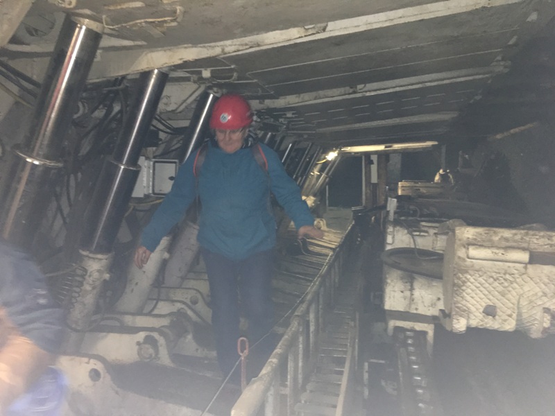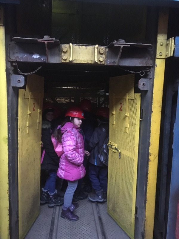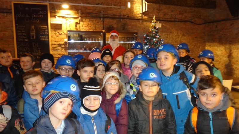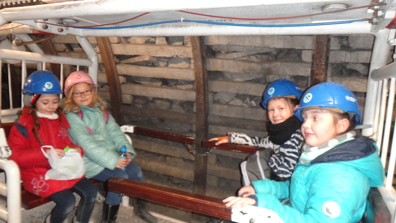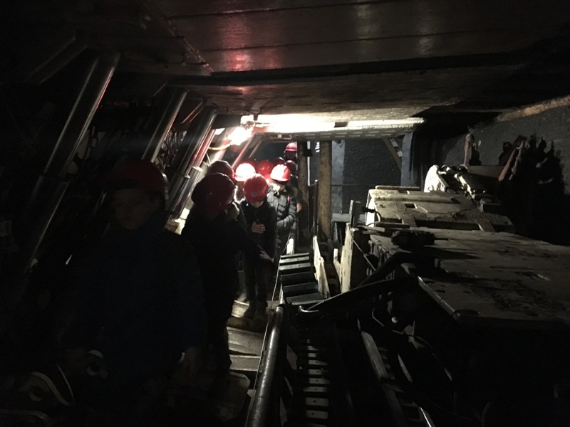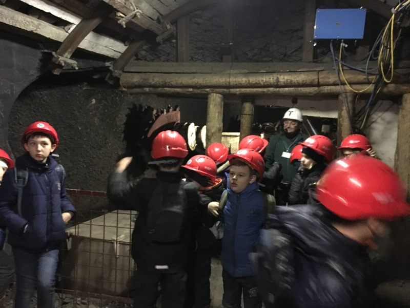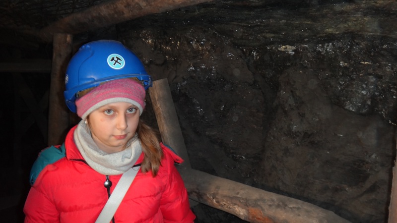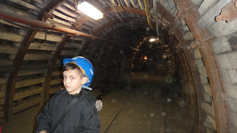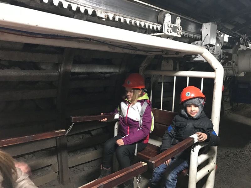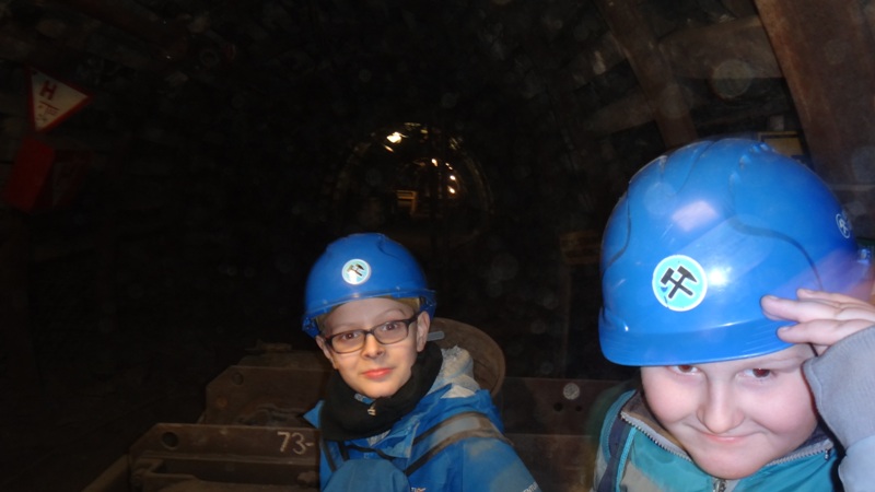 Górniczą szolą najpierw zjechaliśmy na poziom 170, gdzie obejrzeliśmy podziemne stajnie z przełomu XIX i XX wieku, multimedialne projekcje wody wdzierającej się do górniczego chodnika i huk wybuchających materiałów strzałowych. Poznaliśmy też dzieje patronki górników i piękną kaplicę z witrażem i rzeźbą św. Barbary. Potem tą samą szolą zjechaliśmy na poziom 320. Jest to najgłębiej położona w kopalni węgla kamiennego trasa turystyczna w Europie . Tam przekonaliśmy się na własne oczy jak wygląda górnicza szychta. Pokazano nam jak pracują maszyny górnicze i w jak trudnych i niebezpiecznych warunkach pracują górnicy. Tam też jechaliśmy podwieszaną kolejką elektryczną.