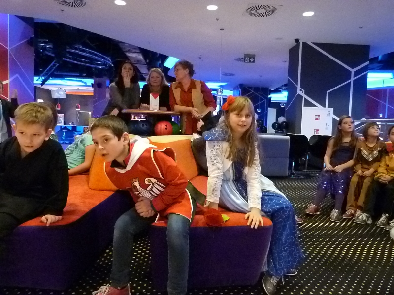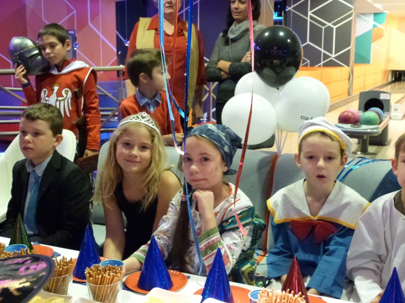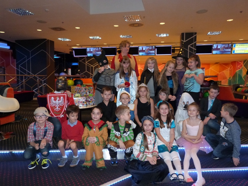 Na spotkanie w kręgielni licznie przybyli bohaterowie naszych ulubionych książek, tak więc spotkać można było Dziewczynkę z zapałkami, Alicję z Krainy Czarów, Hermionę, Calineczkę, Koszmarnego Karolka, Mikołajka i wielu, wielu innych znakomitych gości... zobaczcie sami! Zabawa była przednia - wszyscy Oni stanęli do konkurencji - "Kto więcej kręgli strąci".