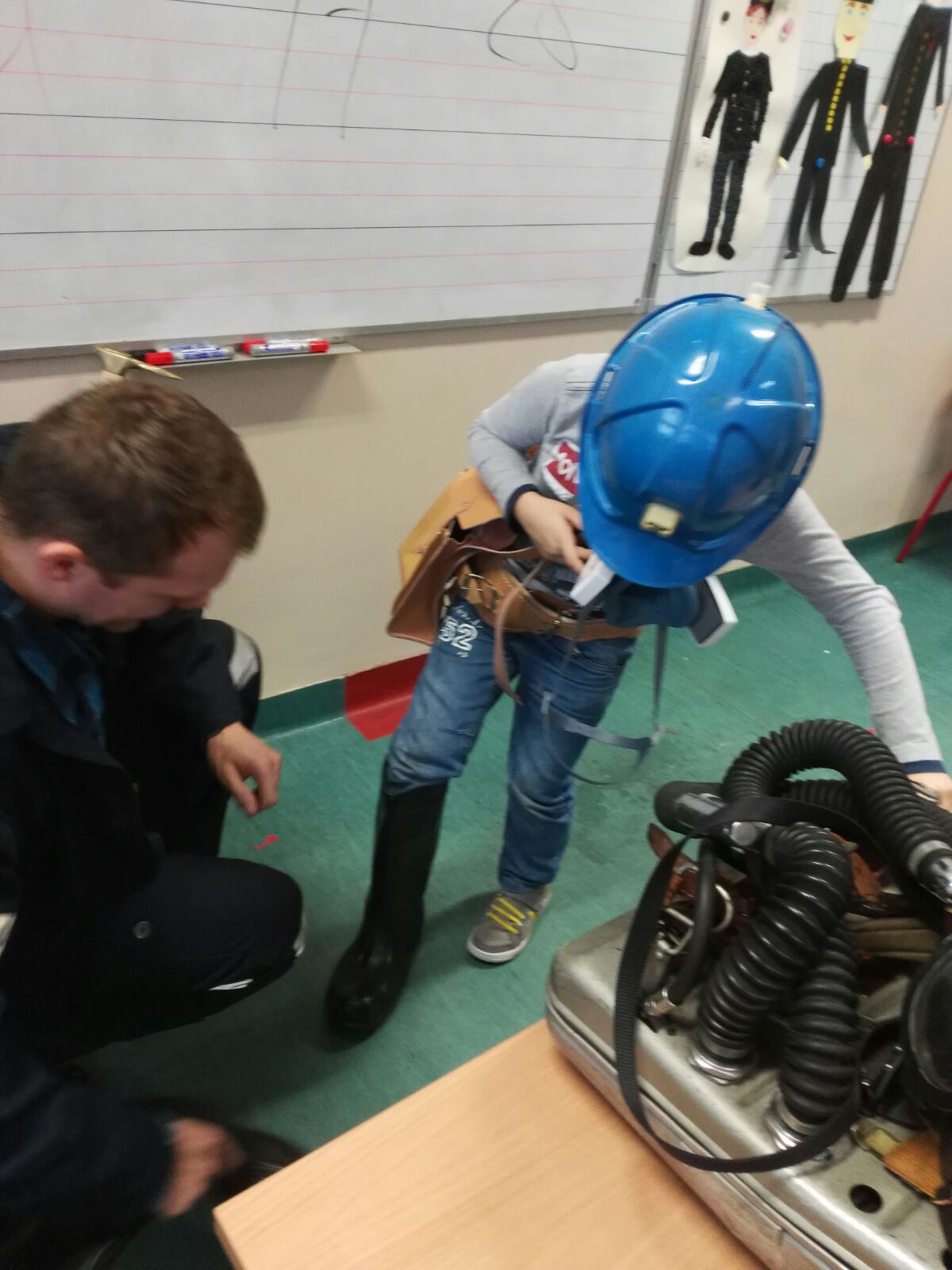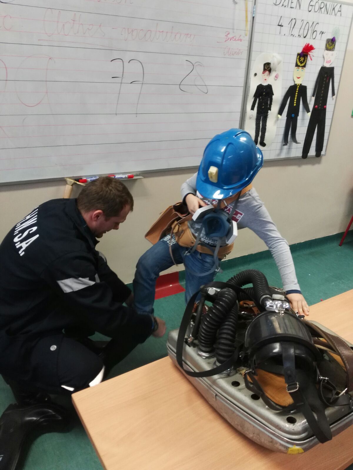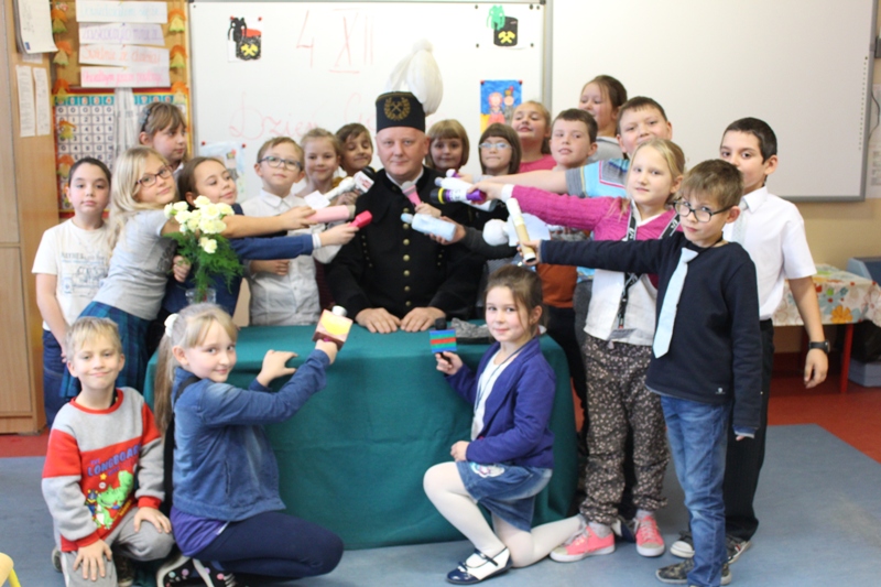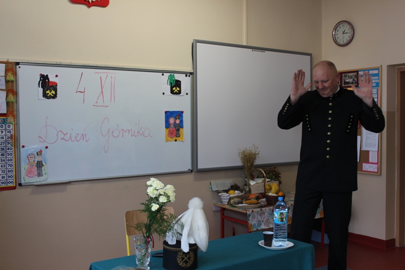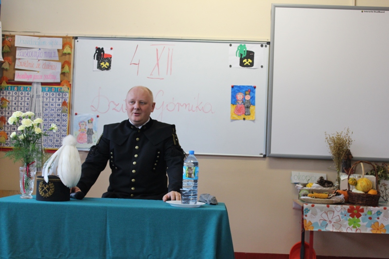 W oczekiwaniu na tradycyjną Barbórkę w klasie III "e" odbyła się konferencja prasowa z zaprzyjaźnionym górnikiem - Panem Januszem Stolarczykiem.