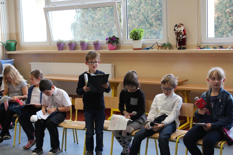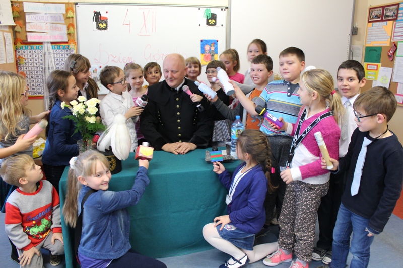 Pytania były różne, różniste od zawodowych, bardzo fachowych do osobistych. Mali dziennikarze/reporterzy wykazali się dużym profesjonalizmem, zaś pan górnik dużą cierpliwością, odpowiadając z uśmiechem na wszystkie pytania.